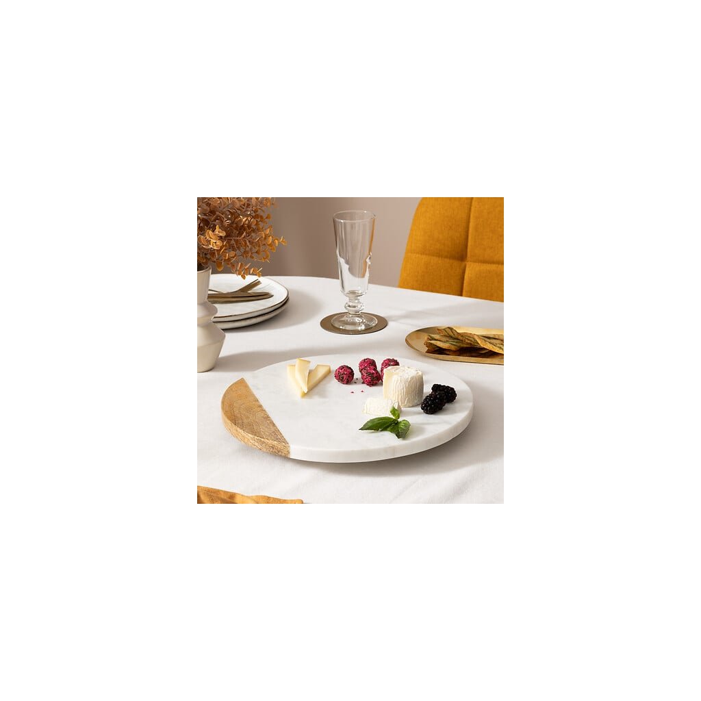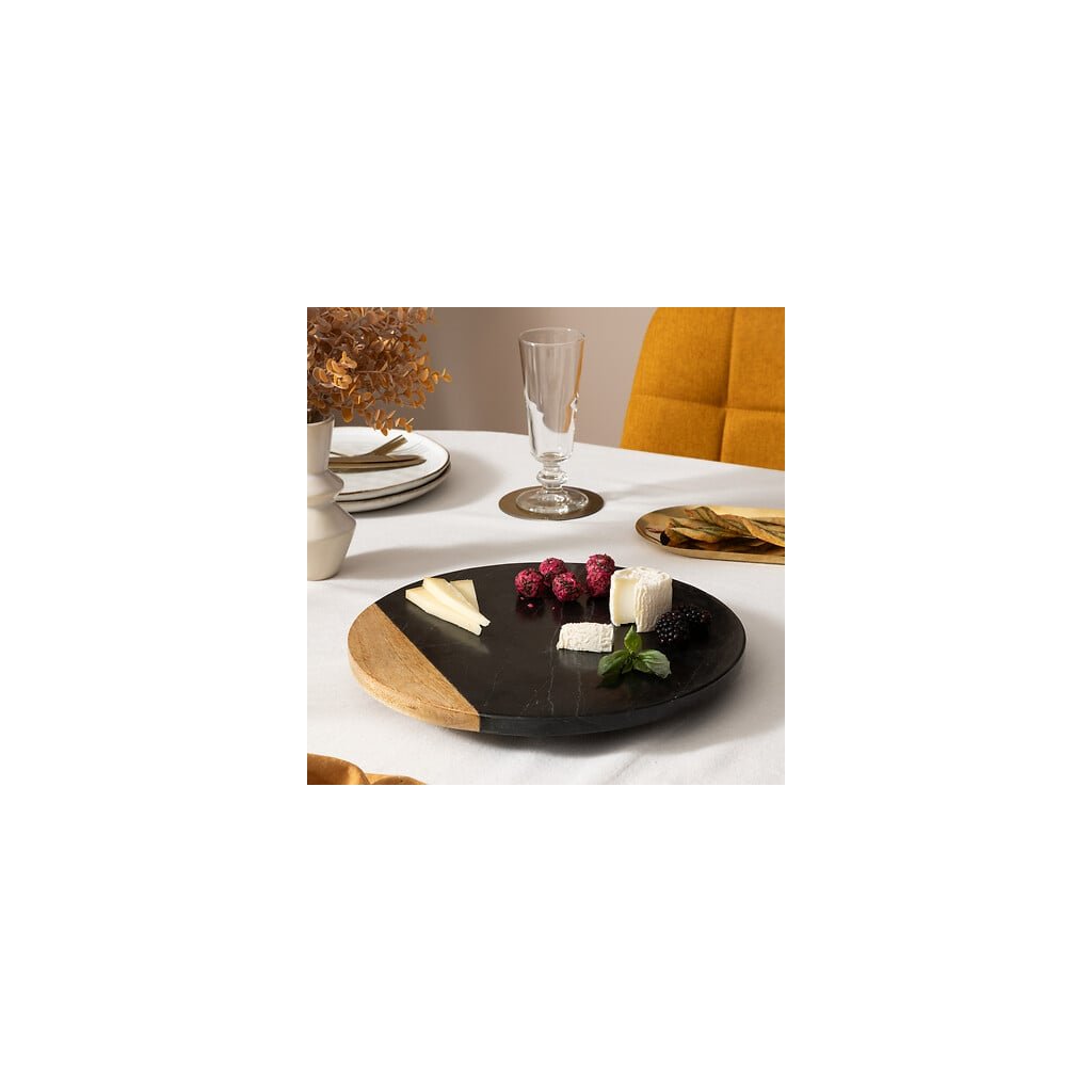 OTOČNÝ SERVÍROVACÍ PODNOS Z MRAMORU A DREVA 30 CM